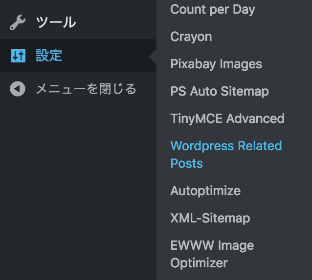 (2)メニューの「設定」から「Wordpress Related Posts」を選択してください。
